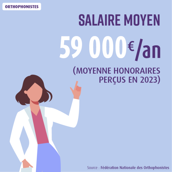 - En moyenne, les orthophonistes perçoivent 59 000€/an d'honoraires.