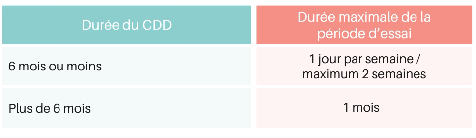Pour un CDD (sauf cas particulier1), les durées maximales de la période d'essai initiales sont :