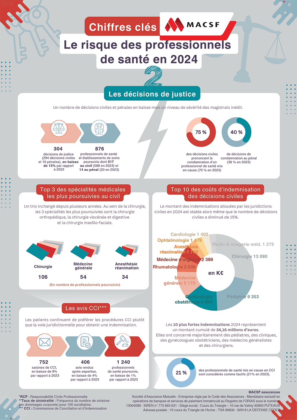 Évolution des déclarations MACSF en 2024 : stabilité pour les généralistes, exposition élevée pour la chirurgie